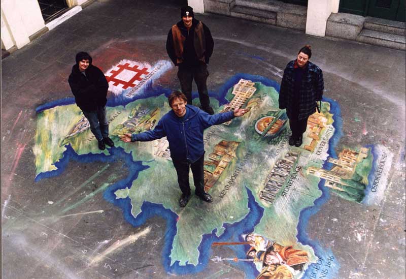 Street advertising services 3d street artists can build a temporary wall structure on site for you at your event... .. Pavement painting, pavement drawing and sidewalk chalk art is done by artists from all over the world, such as the street painters kurt wenner or edgar mueller or the pavement artist julian beever.